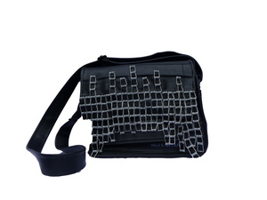 Deze messenger Arti tas is gemaakt van gerecycled fietsbinnenbanden waarin 450 lipjes van blikjes zijn verwerkt.