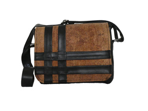 Deze tas is gemaakt van hergebruikte fietsbinnenbanden en kurk.