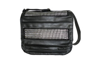 Deze tas is gemaakt van gerecycled fietsbinnenbanden en bewerkt leer.